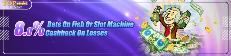 At Top777, we’re thrilled to bring you an exclusive 8% cashback on all fishing games. This exciting offer adds extra fun and rewards to your gaming adventure. Dive into thrilling fishing games with vibrant graphics, exciting gameplay, and the opportunity to reel in big wins. Plus, with cashback on your losses, your time spent fishing becomes even more rewarding.